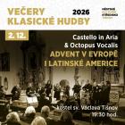 Adventní koncert souboru Castello in Aria a vokálního ansámblu Octopus Vocalis bude ve znamení duchovní vokální a instrumentální hudby z období renesance a baroka. Křehké rozjímání budou střídat energické taneční jihoamerické rytmy.