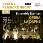 Co tak zajít si na operu? Ensemble Damian pod vedením impresária Tomáše Hanzlíka přijede zahrát vůbec první operu v dějinách - La Dafne z roku 1598. Ztracenou hudbu Jacopa Periho zkomponovala na dochované libreto Ottavia Rinucciniho dvojice autorů Vít Zouhar a Tomáš Hanzlík. O nastudování se postaral uznávaný slovinský režisér Rocc. Opera se od roku 2011 uváděla dalších devět sezon s velkým úspěchem v Národním divadle Brno. Pro velký zájem posluchačů se Ensemble Damian rozhodl operu letos nově nastudovat.