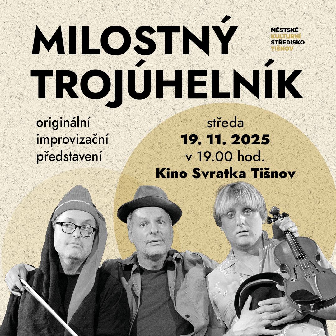 Trojice herců Lukáš PAVLÁSEK, Josef POLÁŠEK a Martin ZBROŽEK vstupuje na jeviště bez předem daného scénáře. Situace, postavy, zápletky, charaktery, písničky i tance, to vše se rodí až na jevišti. To musíte zažít! Úspěšné improvizační představení ve středu 19. listopadu v 19 hodin v Kině Svratka. Více informací k představení a odkaz na vstupenky (od 24.9.) najdete v programu na webu.