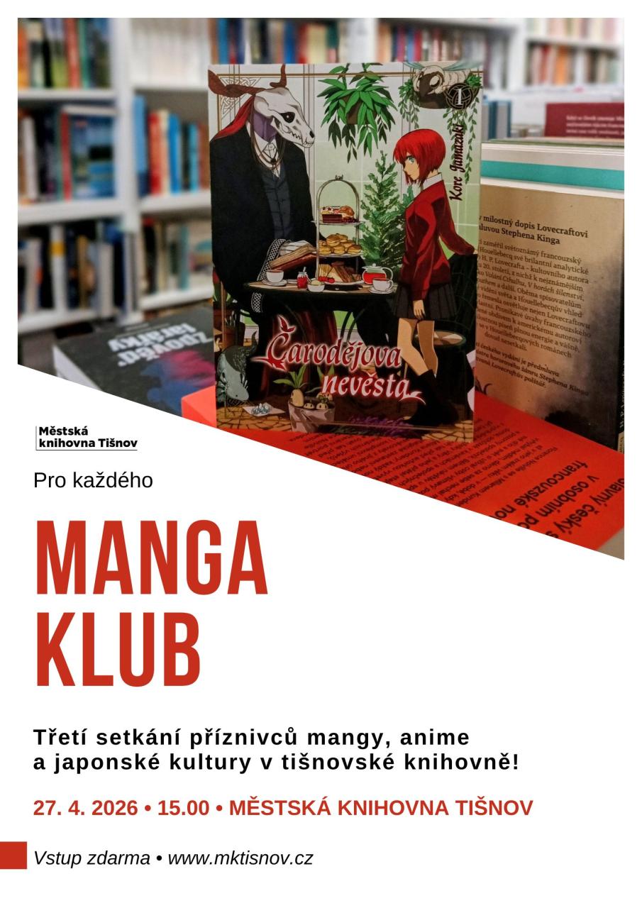 Nenechte si ujít již třetí setkání příznivců mangy v tišnovské knihovně! Manga klub povede milovnice mangy, anime a japonské kultury Veronika Kovářová.