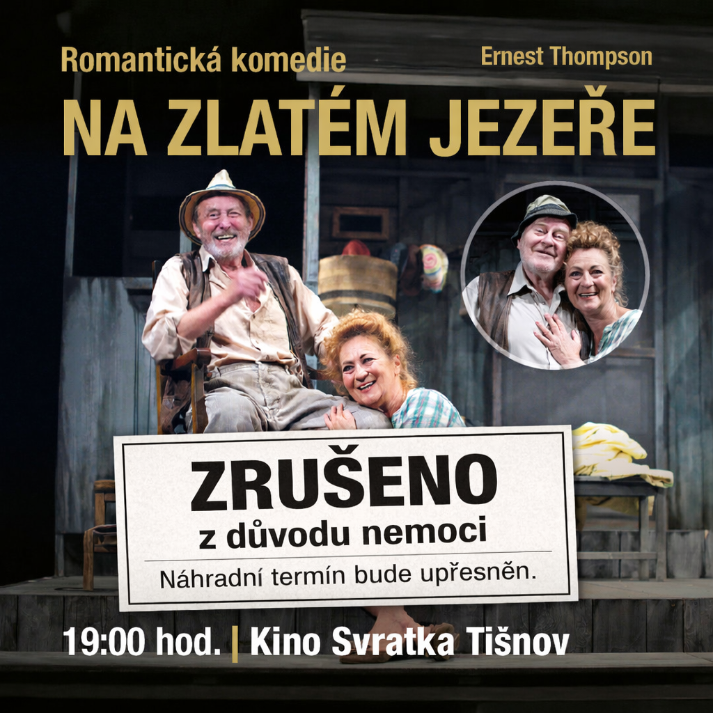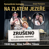 Divadelní představení NA ZLATÉM JEZEŘE, původně plánované na 19. února, bylo z důvodu nemoci přesunuto na sobotu 11. dubna. Představení je vyprodáno a vstupenky zůstávají v platnosti.