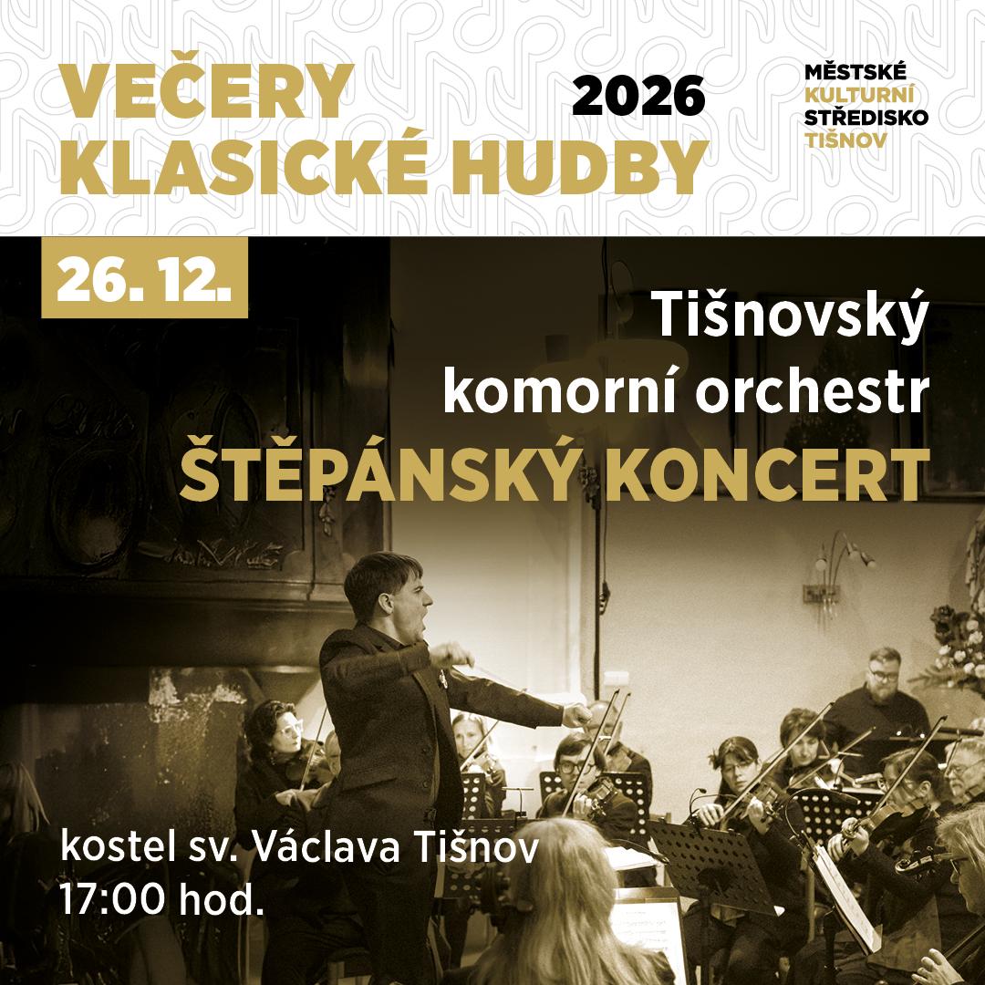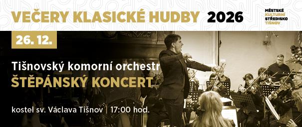 Tišnovský komorní orchestr se představí na tradičním Štěpánském koncertu, kterým důstojně uzavřeme letošní cyklus Večerů klasické hudby. Na Štěpánský koncert si orchestr přizval houslistu Richarda Kružíka, pedagoga konzervatoře Brno, a Královopolský chrámový sbor se sbormistrem Janem Hanáčkem.